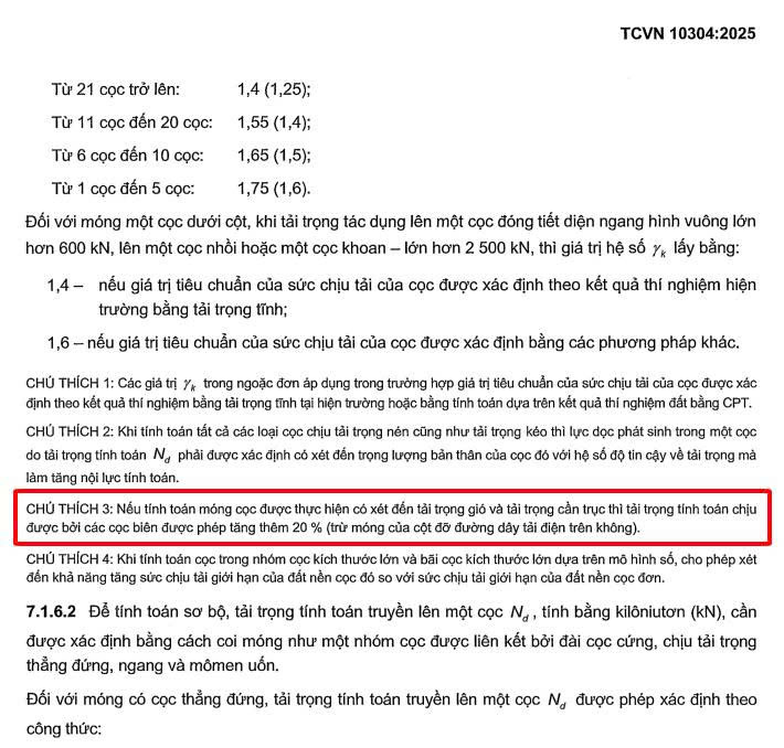2-Khi có tải gió, theo TC 10304:2025 cọc DUL biện được tăng sức chịu tải lên 20% nhưng giá trị này phải nhỏ hơn sức chịu tải dài hạn của cọc DUL phải không ạ?