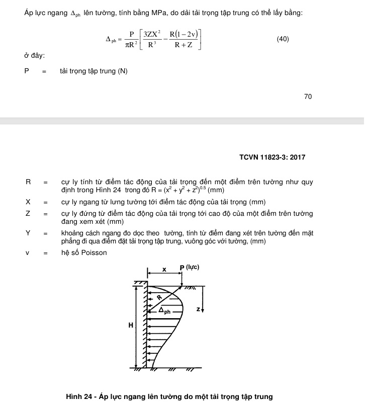 Giả sử lực tác dụng xuống các chân móng (sâu khoảng 1.5m) là P => móng đơn tạo ra áp lực đáy móng là p (kN/m2), thì mình có thể xác định được giá trị x (áp lực do lực p tác dụng lên đất rồi truyền vào thành tường chắn) bằng công thức nào ạ? e tìm mà chưa ra công thức liên quan. mong các anh chị chỉ giáo ạ.