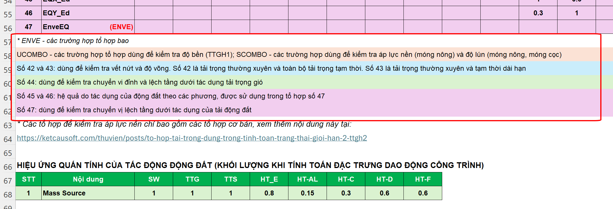 Hi em, trong bảng trên thì các tổ hợp bắt đầu bằng chữ U (ví dụ UCOMBO1) là các tổ hợp tính toán. Đặc điểm dễ nhận ra đó là các hệ số tổ hợp <> 1. Ví dụ dòng số 1 UCOMB1 = 1.1 SW + 1.15 TTS v.v.. thì 1.1 và 1.15 ở đây chính là hệ số độ tin cậy (hay trước đây gọi là hệ số an toàn)