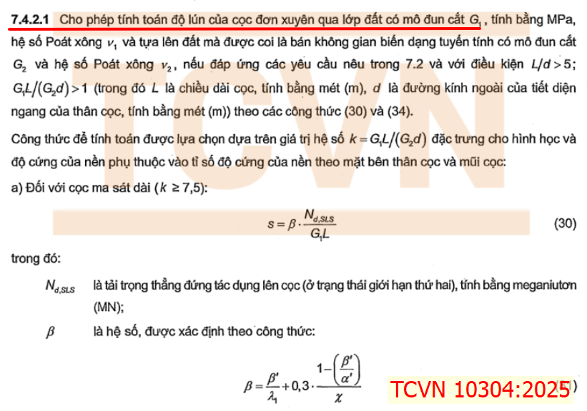 Tuy nhiên giá trị này thường không có trong báo cáo khảo sát địa chất, mà thường được tính thông qua mô đun tổng biến dạng Eo, như được nêu trong mục 7.4.2.2 của TCVN 10304:2024