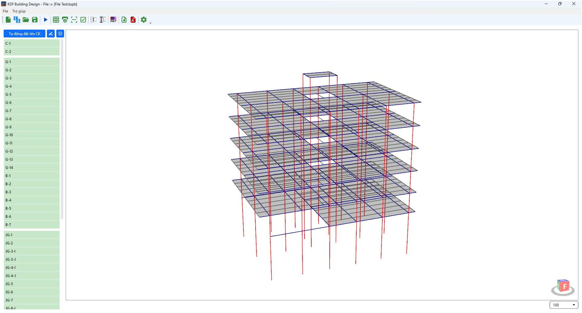 ✔️ Đọc dữ liệu và hiển thị 3D trực quan: Phần mềm này có khả năng đọc dữ liệu mô hình và hiển thị 3D trực quan. Nghĩa là bạn không còn nhìn bảng số khô khan hay ma trận lực như thời đồ đá, mà thấy luôn công trình trong không gian 3 chiều: dầm, cột, móng, liên kết hiện hình rõ ràng.