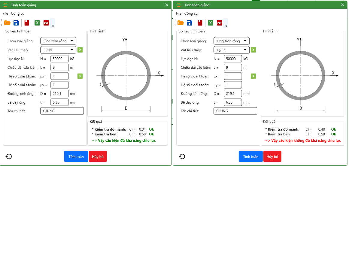 Kết quả tính toán được xuất ra file Excel, PDF với nội dung rõ ràng mạch lạc, form mẫu đặc trưng của KetcauSoft.