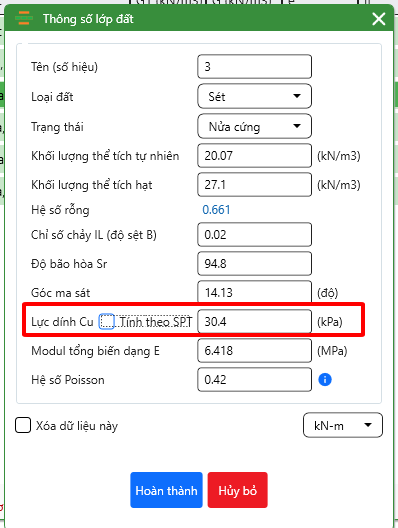Em chào anh Hùng. Anh cho em hỏi em dùng phần mềm PBC 2025. Em có chỗ này thắc mắc :  chỗ thông số lớp đất có lực dính Cu thì em chọn tính theo SPT hay không chọn tính theo SPT ạ. Nếu em chọn tính theo SPT thì ra sức chịu tải của cọc chịu nén lớn, còn nếu em không chọn SPT thì ra sức chịu tải của cọc chịu nén nhỏ