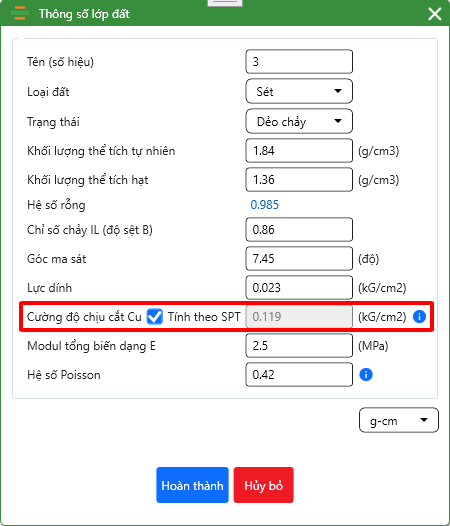 ETA - Tự động hoá mô hình ETABSTrong phần mềm PBC, cường độ chịu cắt Cu được sử dụng khi tính toán SCT của cọc theo chỉ số SPT (phụ lục D - TCVN 10304:2025).