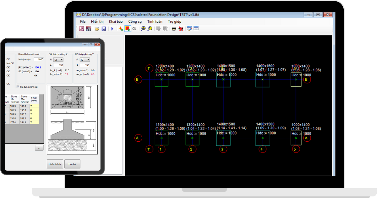 Công tác thiết kế móng đơn thông thường đòi hỏi xử lý nhiều số liệu, nhưng đối với phần mềm thiết kế móng đơn IFD thì việc này trở nên rất đơn giản.
