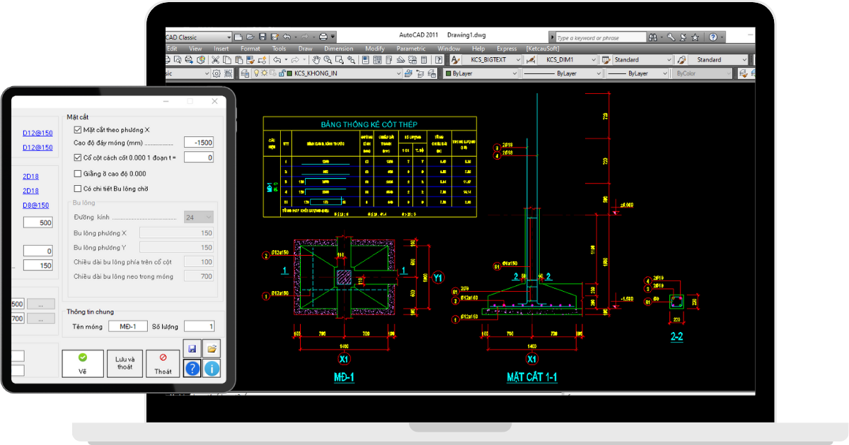 Thay vì mất thời gian tự vẽ các nét rời rạc, hoặc sẽ mắc các lỗi cơ bản như copy và quên edit số khi sử dụng bản vẽ cũ; phần mềm IFDe hỗ trợ người dùng nhanh chóng tạo bản vẽ chi tiết móng đơn chỉ bằng cách nhập các thông số và quan trọng là bản vẽ chính xác tuyệt đối về số liệu và bảng thống kê luôn luôn khớp với bản vẽ.