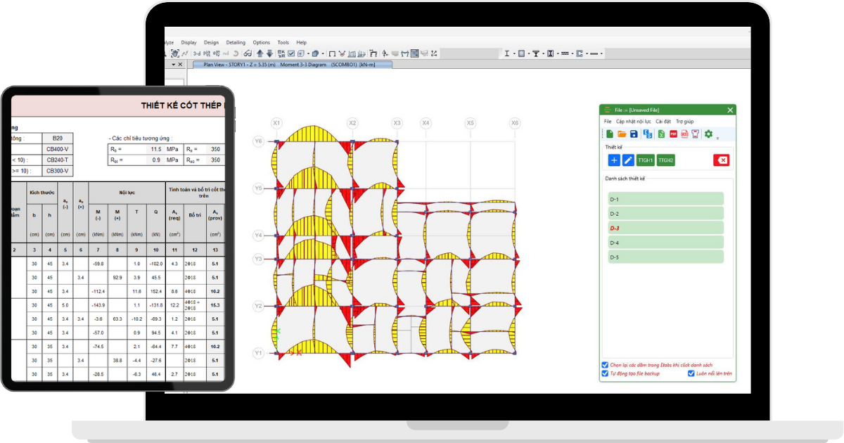 RCBc Lite là phiên bản thu nhỏ của RCBc 2023, cho phép kết nối API trực tiếp với ETABS, SAP2000 và SAFE để đọc nội lực ngay từ mô hình phân tích.