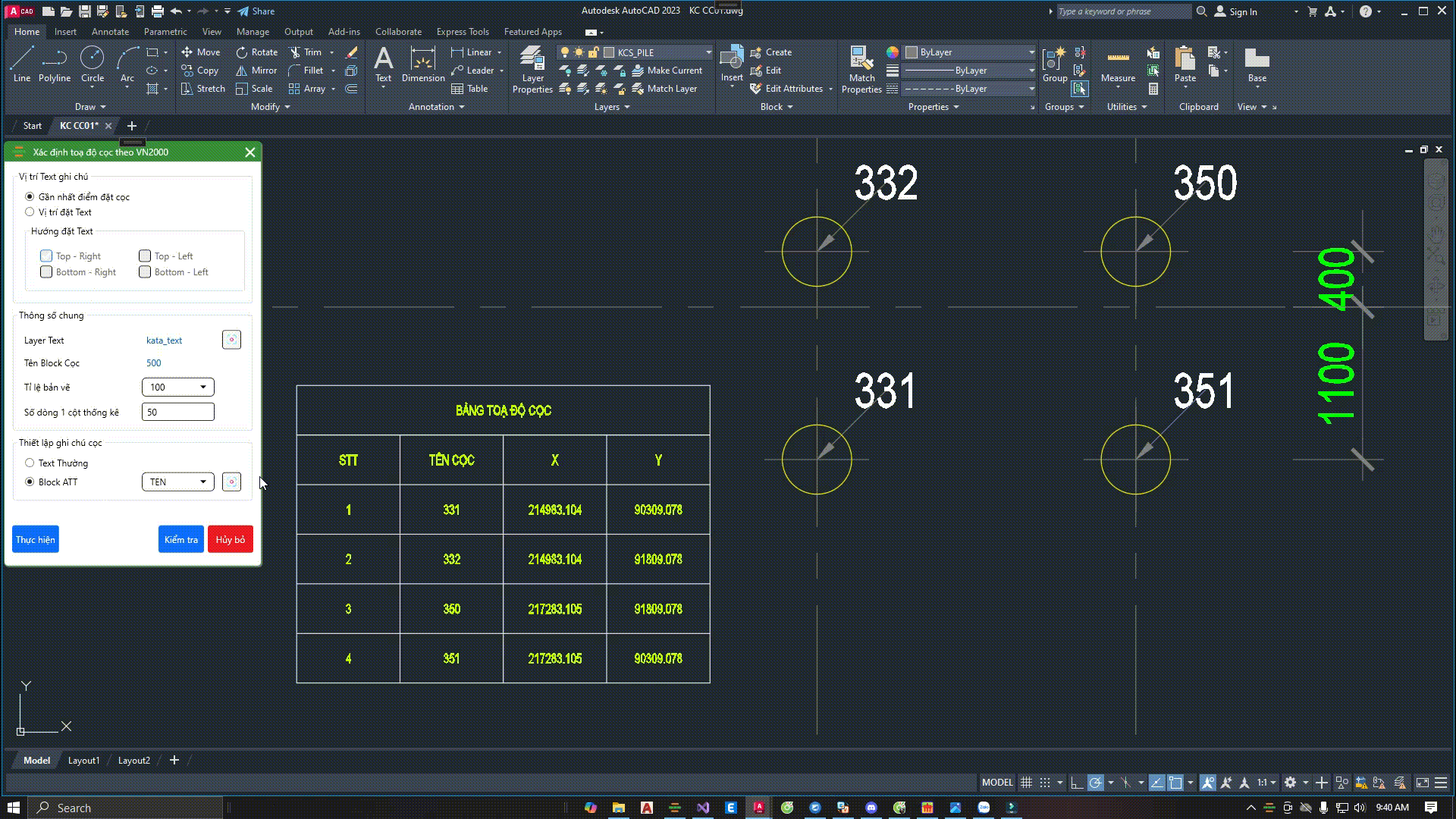 Kiểm tra toạ độ cọc trong bảng định vị VN2000 || QuickDraw - Tiện ích triển khai kết cấu