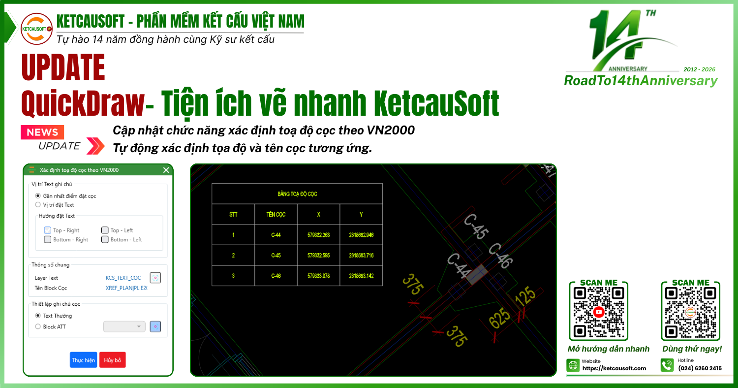 - Xuất bảng tính Excel và file (*.rcb) phục vụ triển khai bản vẽ