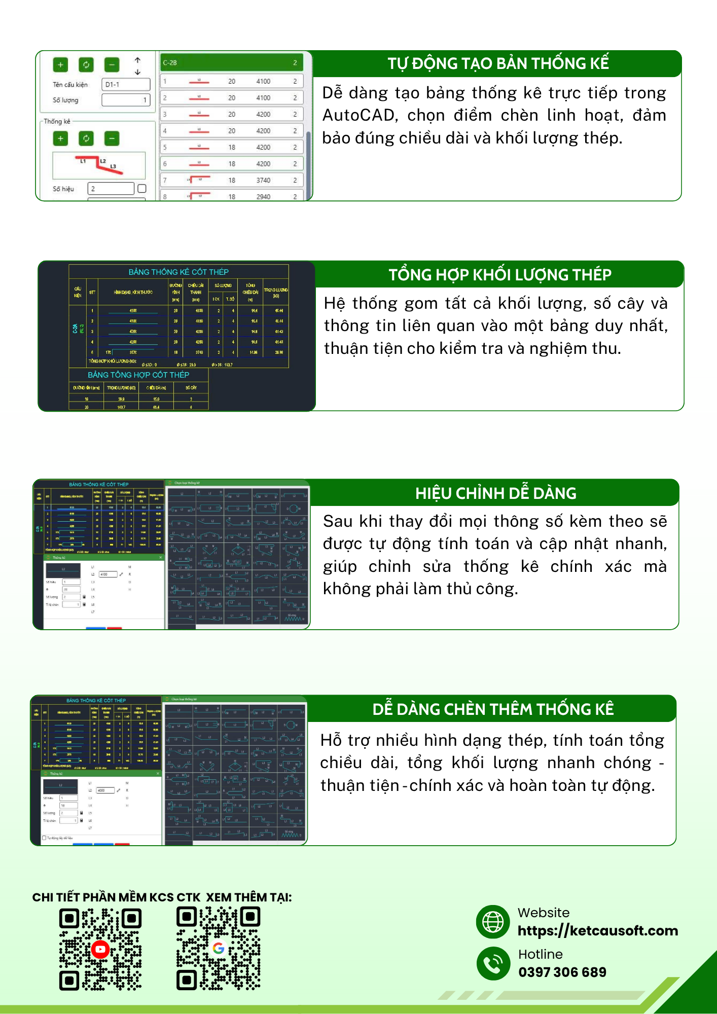 Thống kê cốt thép (CTK) - Tính năng || KetcauSoft